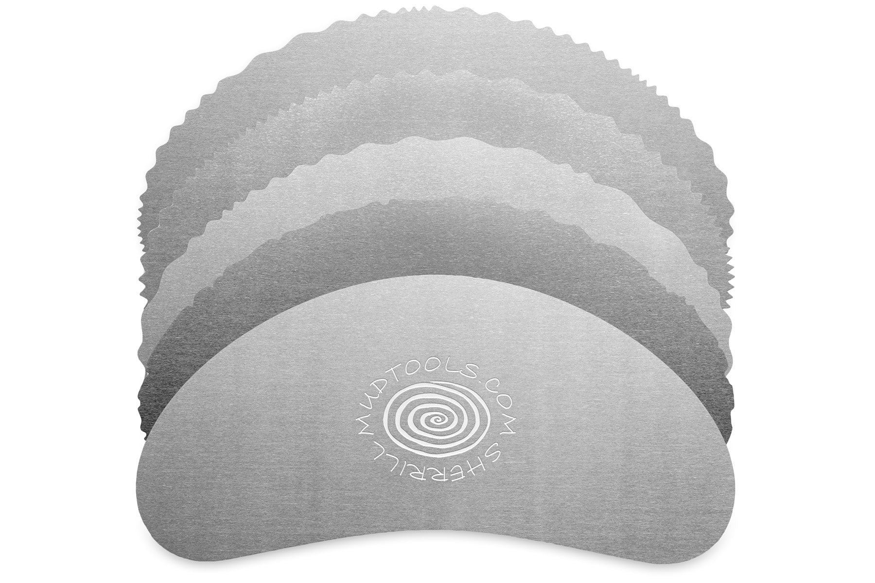 Depuis des années, Michael modifie ses nervures métalliques pour créer des surfaces intéressantes. Nos nervures de dessin sont fabriquées en acier inoxydable de qualité professionnelle. Considérez nos nervures de dessin comme différentes pointes de stylo ou de pinceau. La forme de haricot est parfaite pour les bols et les tasses, à l'intérieur comme à l'extérieur. Choisissez parmi 5 bords différents :