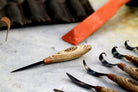 Ce magnifique couteau à ébavurer fait partie de la série d'outils Signature de Michael Sherrill. Fabriqué à la main dans l'atelier de Michael à partir d'acier au carbone de qualité professionnelle, de cuivre et de bois dur local provenant de sources durables, ce couteau est une œuvre d'art à part entière. Chez Mudtools, nous nous efforçons de fabriquer des outils fonctionnels, durables et esthétiques. Notre manche en bois tourné offre une prise en main confortable et roule facilement dans la main. La lame trempée du couteau offre une excellente flexibilité et résistance. Nous vendons deux longueurs de lame :