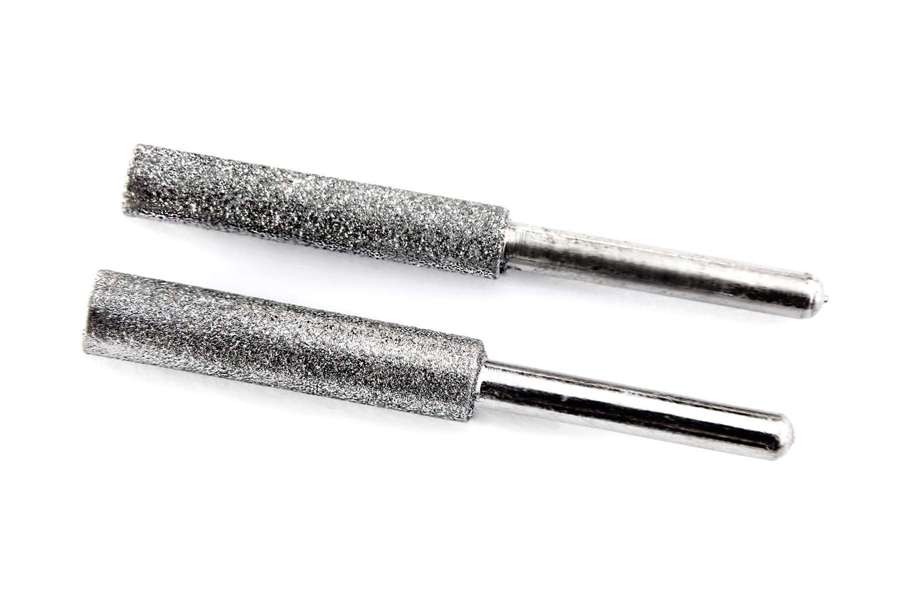 These Diamond Sharpening Burrs are perfect for putting the edge back on your favorite blade. Use this burr bit with a Dremel, flex shaft, or another drill that holds a 1/8″ shaft. These burrs have a fine coating of diamond dust to cut quickly and smoothly through metal. A slight bevel on one side indicates the sharpened side of the tool. This is the side to use the Diamond Burr on. A light pass over the sharpened side should be enough to renew most blades.